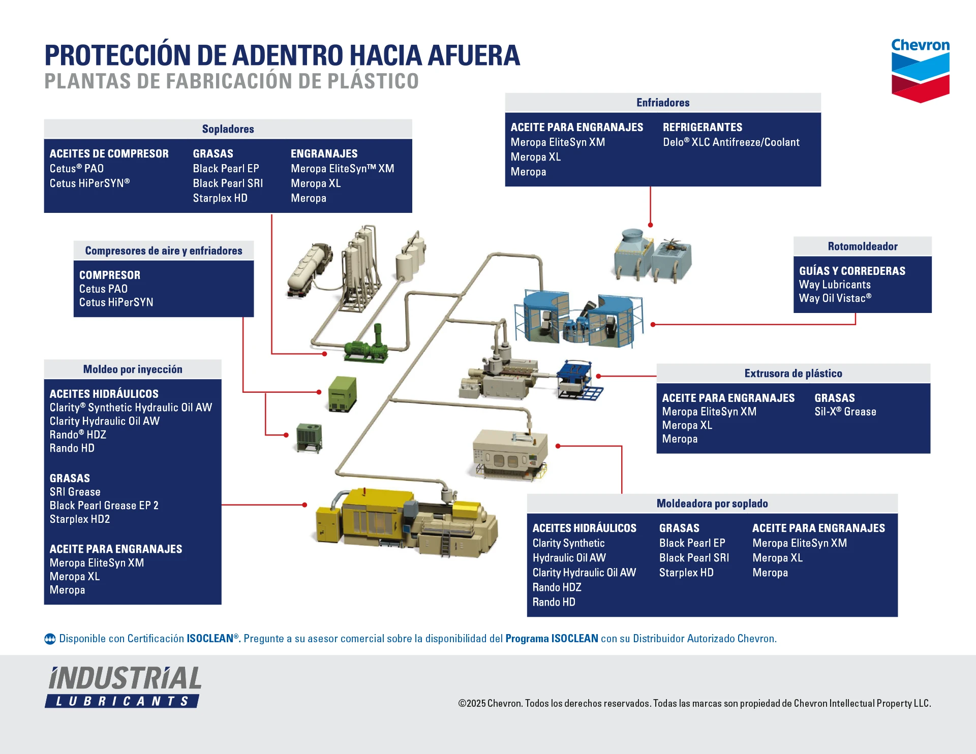 En la industria de la fabricación de plásticos, cada etapa del proceso demanda precisión, continuidad operativa y lubricación de alto desempeño. En Chevron Lubetek, ponemos a su disposición soluciones integrales diseñadas para optimizar la eficiencia de sus equipos, prolongar la vida útil de sus activos y reforzar la calidad de sus productos finales.
